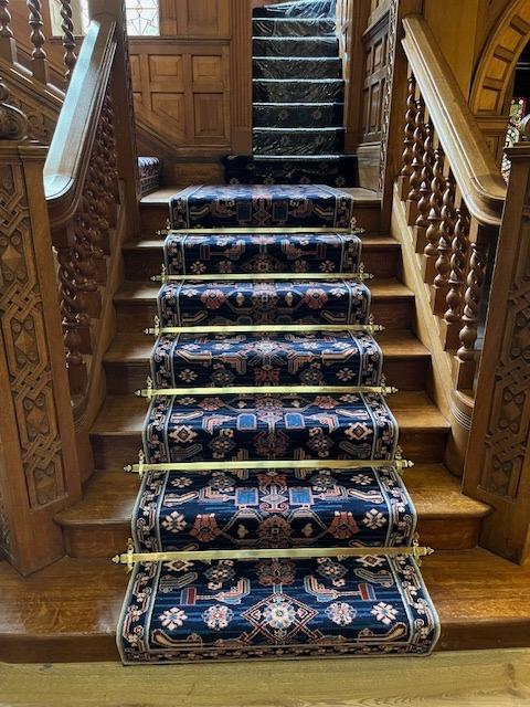 Taking inspiration from the 1920s and 30s, when the hotel first opened, we created a bespoke check pattern in heavy contract woven 80/20 axminster for the bedrooms. This understated design enhances the serene aesthetic across the 21 rooms and the boathouse suite. The grand staircase in the main house, in particular, required something exceptional to complement its recent restoration. A bespoke runner, inspired by traditional Turkish designs with a contemporary twist, was crafted to accentuate the hotel’s Victorian character.